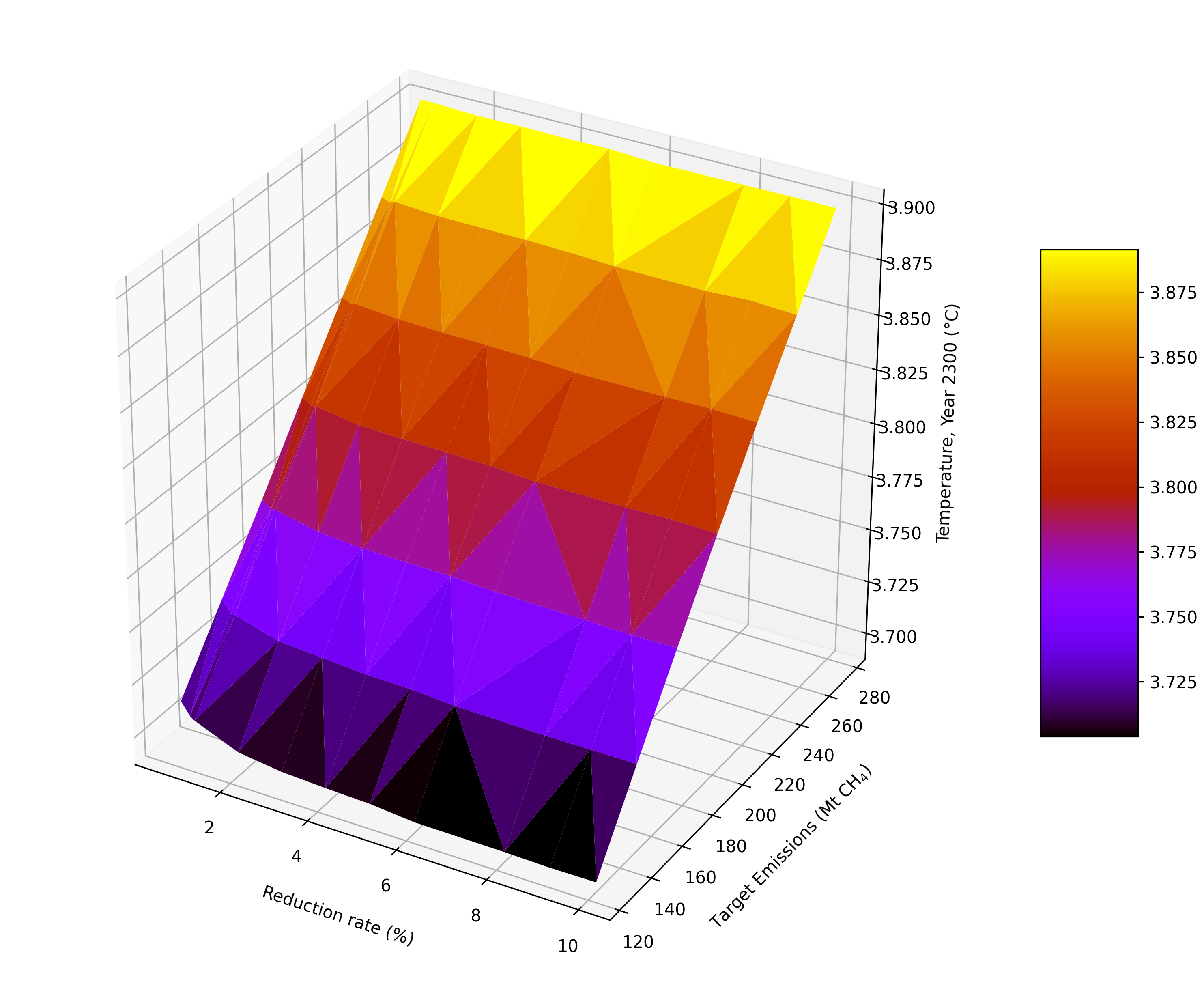 We learned that final emissions baseline (i.e., at year 2100, how much methane was being emitted) was the most important factor in determining long-term temperature change. The annual rate of reductions did not have much impact, so long as the rate of phaseout was fast enough to ensure we reached our desired target. However, further research is needed with more consideration of other methane dynamics.
